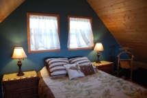 Romantic bedroom with ocean views and breezes, queen sized memory foam mattress and writing desk in the vaulted, airy loft.
