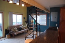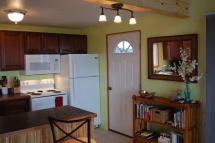 Light and airy living space with original art, beautiful spiral staircase, furnishings in teak and bamboo, futon couch that converts to extra sleeping for two. Washer and dryer available for your convenience.